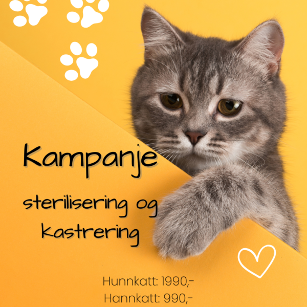 Vi kjører kampanje på kastrering og sterilisering av katt ut året! Hunnkatt: 1990,- Hannkatt: 990,- Vaksine i tillegg: 400,- Bestill time her: Kristiansand…