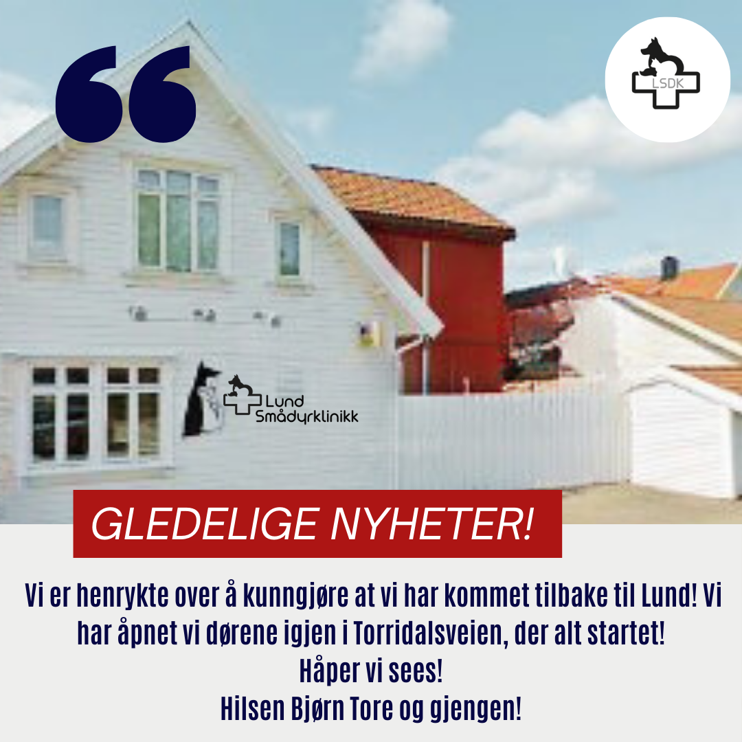 Både Torridalsveien 49 og Krittveien er klare til å ønske våre dyrevenner velkommen. Mange to- og firbeinte venner har savnet oss på Lund, og vi gleder oss til å fortsette å gi omsorg og kjærlighet til dyrene deres.